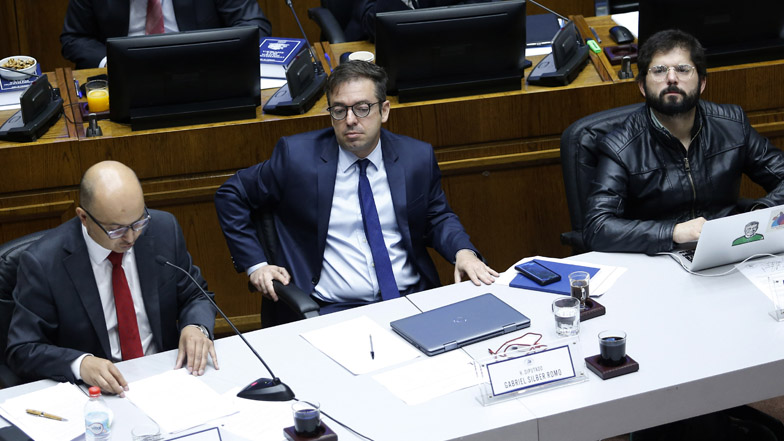 Los diputados Ilabaca (PS), Silber (DC) y Boric (CS) expusieron la acusación en el Senado. (Foto:ATON)