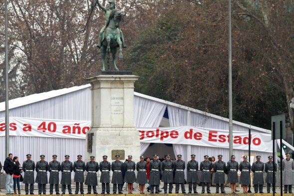 El ministro de Defensa, Rodrigo Hinzpeter, encabezó la ceremonia de izamiento de la bandera nacional ubicada frente al palacio de La Moneda en el inicio del Mes de la Patria y las Glorias del Ejército.