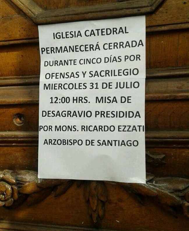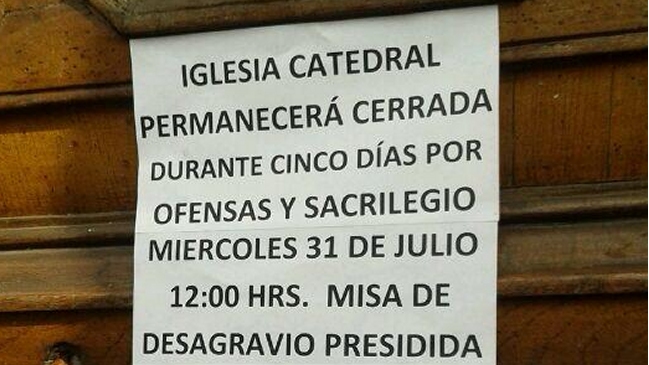 La Catedral de Santiago permanecerá cerrada durante cinco días por "ofensas y sacrilegio", de acuerdo a un comunicado pegado a las puertas del templo.