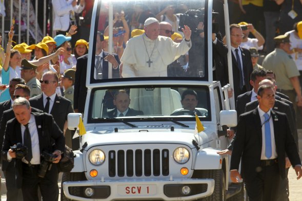 Miles de jóvenes recibieron al papa en su camino al Templo Votivo de Maipú Publicado: Miércoles, 17 de Enero de 2018 13 de 19 El papa llegó al Templo Votivo de Maipú, acompañado de miles de jóvenes que con banderas y pancartas le dieron la bienvenida. El papa llegó al Templo Votivo de Maipú, acompañado de miles de jóvenes que con banderas y pancartas le dieron la bienvenida. ATON