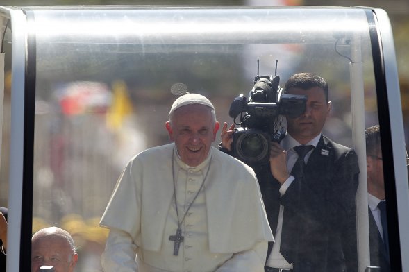 Miles de jóvenes recibieron al papa en su camino al Templo Votivo de Maipú Publicado: Miércoles, 17 de Enero de 2018 18 de 19 El papa llegó al Templo Votivo de Maipú, acompañado de miles de jóvenes que con banderas y pancartas le dieron la bienvenida. El papa llegó al Templo Votivo de Maipú, acompañado de miles de jóvenes que con banderas y pancartas le dieron la bienvenida. ATON