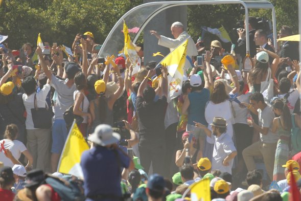 Miles de jóvenes recibieron al papa en su camino al Templo Votivo de Maipú Publicado: Miércoles, 17 de Enero de 2018 4 de 19 El papa llegó al Templo Votivo de Maipú, acompañado de miles de jóvenes que con banderas y pancartas le dieron la bienvenida. El papa llegó al Templo Votivo de Maipú, acompañado de miles de jóvenes que con banderas y pancartas le dieron la bienvenida. ATON
