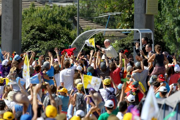 Miles de jóvenes recibieron al papa en su camino al Templo Votivo de Maipú Publicado: Miércoles, 17 de Enero de 2018 5 de 19 El papa llegó al Templo Votivo de Maipú, acompañado de miles de jóvenes que con banderas y pancartas le dieron la bienvenida. El papa llegó al Templo Votivo de Maipú, acompañado de miles de jóvenes que con banderas y pancartas le dieron la bienvenida. ATON