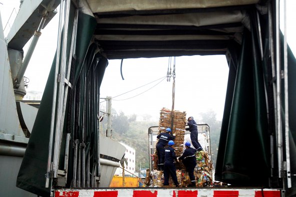 Tópicos: País | Rapa Nui Desechos de Isla de Pascua llegaron al puerto de Valparaíso Publicado: Martes, 24 de Septiembre de 2013 10 de 11 Al molo de abrigo Valparaíso arribó el buque Aquiles de la Armada, proveniente de Isla de Pascua, trayendo 43 toneladas de desechos. Al molo de abrigo Valparaíso arribó el buque Aquiles de la Armada, proveniente de Isla de Pascua, trayendo 43 toneladas de desechos. UPI