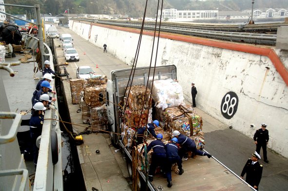 Tópicos: País | Rapa Nui Desechos de Isla de Pascua llegaron al puerto de Valparaíso Publicado: Martes, 24 de Septiembre de 2013 2 de 11 Al molo de abrigo Valparaíso arribó el buque Aquiles de la Armada, proveniente de Isla de Pascua, trayendo 43 toneladas de desechos. Al molo de abrigo Valparaíso arribó el buque Aquiles de la Armada, proveniente de Isla de Pascua, trayendo 43 toneladas de desechos. UPI