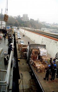 Tópicos: País | Rapa Nui Desechos de Isla de Pascua llegaron al puerto de Valparaíso Publicado: Martes, 24 de Septiembre de 2013 6 de 11 Al molo de abrigo Valparaíso arribó el buque Aquiles de la Armada, proveniente de Isla de Pascua, trayendo 43 toneladas de desechos. Al molo de abrigo Valparaíso arribó el buque Aquiles de la Armada, proveniente de Isla de Pascua, trayendo 43 toneladas de desechos. UPI