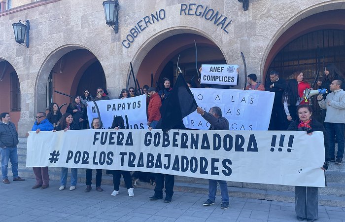 Trabajadores protestaron este viernes en el frontis del GORE, exigiendo la salida de la cuestionada autoridad. (Foto: Carlos Ruiz, Cooperativa)