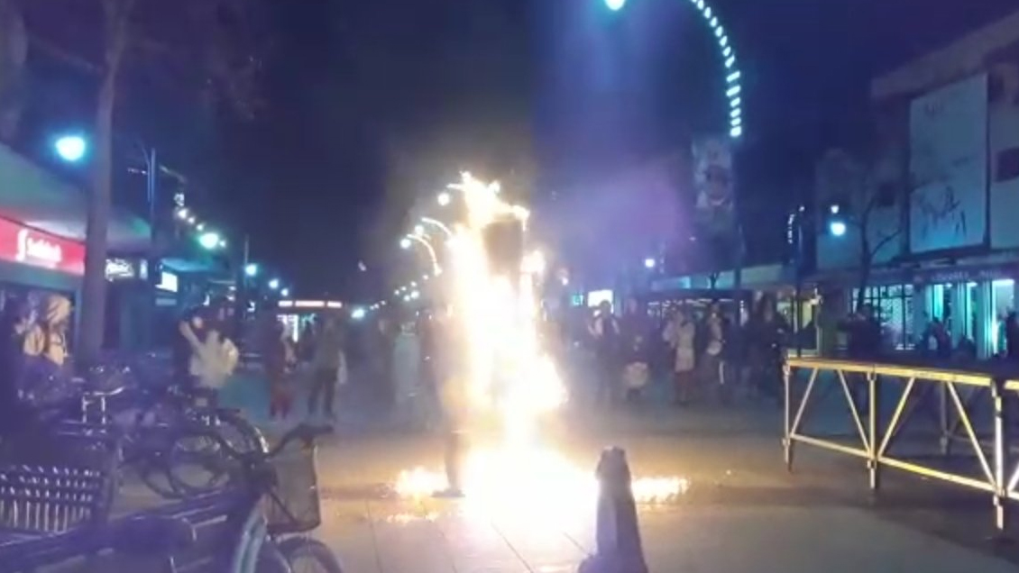 Un grupo de manifestantes calcinó un muñeco con la cara del fallecido ex dictador en pleno paseo peatonal.