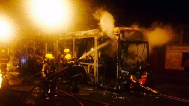 20150912075714| El hecho ocurrió contra una máquina que se movía por calle San Pablo y donde el conductor y los ocupantes fueron conminados a abandonar el bus