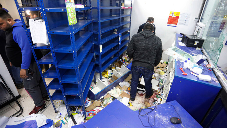 En esa zona céntrica también fue saqueada una farmacia Dr. Simi, ataque que ocurrió cuando "los carabineros no estaban, se habían retirado", informó Marcelo Castillo, dueño de la sucursal, que sufrió robos y daños avaluados en cerca de 90 millones de pesos.