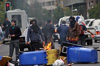17:17 Cerca de un centenar de jóvenes levantó barricadas en las cercanías de la Estación Mapocho, y arrojan piedras contra las vidrieras del centro cultural.