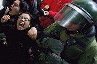 Efectivos de Fuerzas Especiales de Carabineros, con la ayuda del carro lanzaaguas y gases lacrimógenos, lograron dispersar a los centenares de estudiantes secundarios que marcharon por Alameda hacia el oriente causando algunos destrozos a su paso.