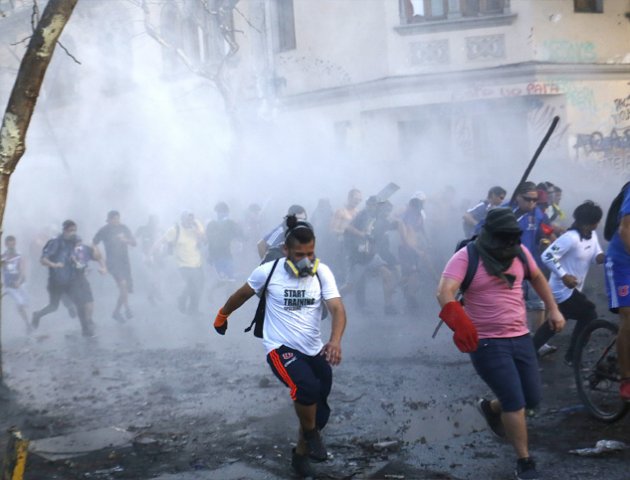 | Se registran algunos enfrentamientos entre manifestantes y Carabineros, que actúa con carros lanzaaguas y lanzagases, por el sector de Vicuña Mackenna, en Plaza Italia #CooperativaContigo
