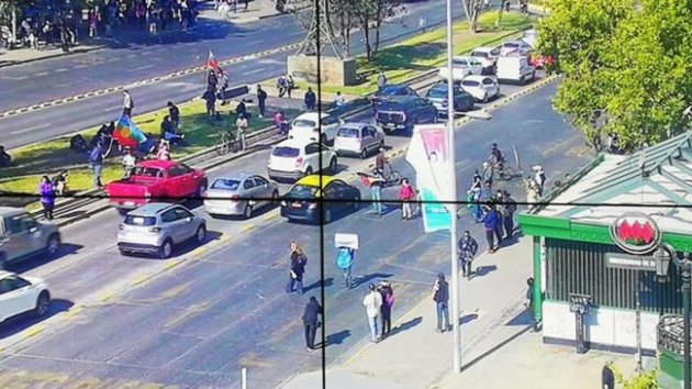 Informamos que un grupo de indviduos ocasiona desórdenes en la Alameda, sector del Metro Universidad de Chile. Sugerimos a conductores y peatones preferir vías alternativas. pic.twitter.com/BkOcFrqxll