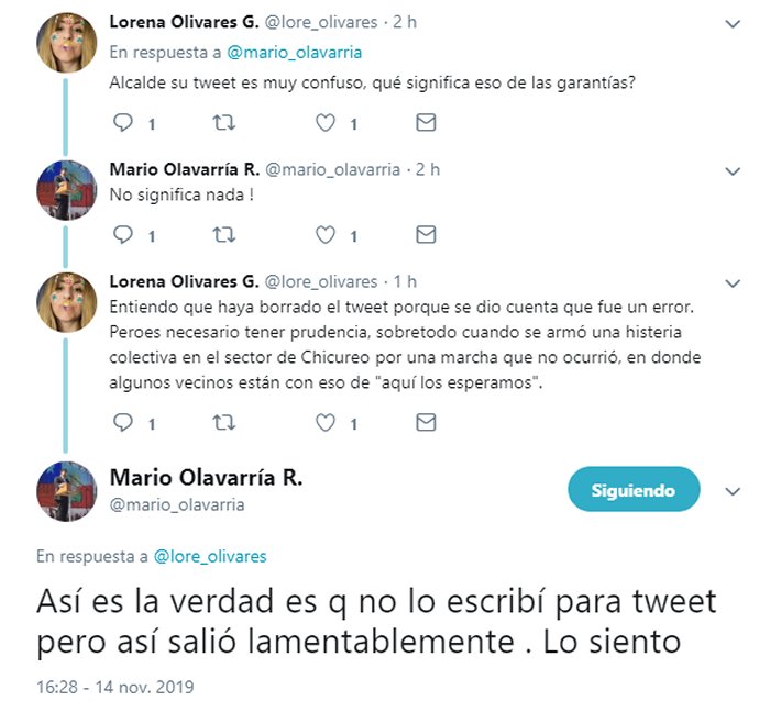 "La verdad es q no lo escribí para tweet, pero así salió lamentablemente . Lo siento", se disculpó luego el alcalde en la misma red social, ante insistentes consultas de otros usuarios.