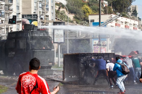 Carabineros y pescadores se enfrentaron en Valparaíso Publicado: Miércoles, 2 de Julio de 2014 9 de 24 Personal de Fuerzas Especiales de Carabineros se enfrentó a los pescadores de Caleta Portales en las cercanías de la Avenida España en Valparaíso. Personal de Fuerzas Especiales de Carabineros se enfrentó a los pescadores de Caleta Portales en las cercanías de la Avenida España en Valparaíso.UPI