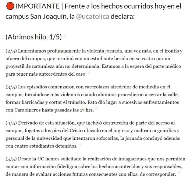 | El Presidente @sebastianpinera ocupó su cuenta de Twitter para reiterar los puntos más importantes de su último discurso, insistiendo en que "Chile cambió y el Gobierno cambió" #CooperativaTuVoz