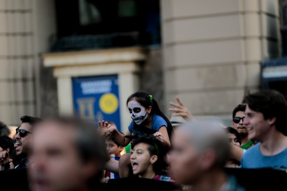 Cientos de personas se manifestaron en la tarde de este viernes en las calles de Santiago manifestando su rechazo a la firma del Acuerdo de Asociación Transpacífico (TPP).