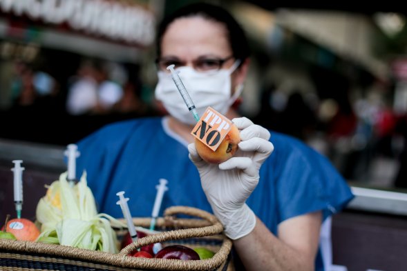 Cientos de personas se manifestaron en la tarde de este viernes en las calles de Santiago manifestando su rechazo a la firma del Acuerdo de Asociación Transpacífico (TPP).