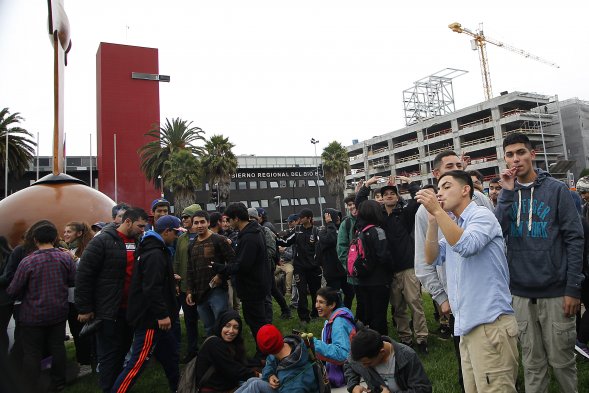 Cientos de personas se reunieron a fumar cannabis frente al Palacio de La Moneda en Santiago y en el frontis de la Intendencia Regional del Biobío, en Concepción, para celebrar el Día Mundial de la Marihuana y reclamar contra la Ley 20.000.