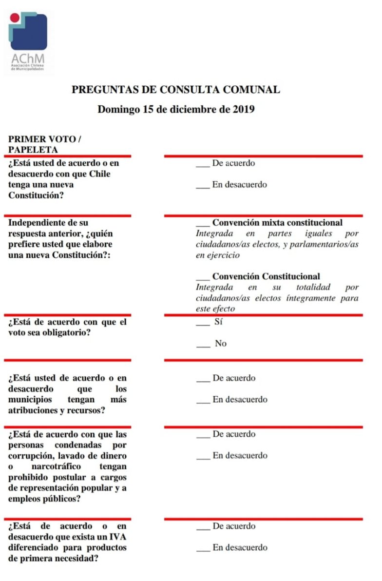 Ante esta situación, las preguntas no estarán centradas en la nueva Constitución y el mecanismo de elaboración del documento, sino que también se consultará sobre la necesidad de volver al voto obligatorio y las posibles inhabilitaciones para cargos públicos a políticos condenados por corrupción.
