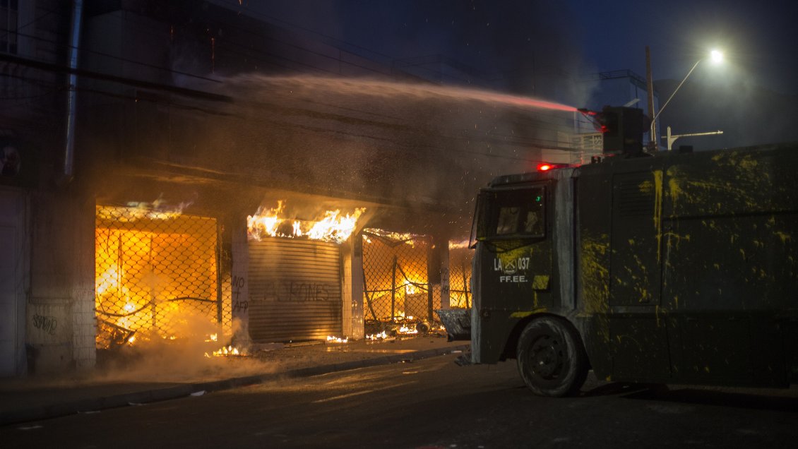El reporte detalla que el sábado 19, primer día que amaneció bajo Estado de Emergencia en la Región Metropolitana, dos personas resultaron fallecidas en el incendio que afectó al supermercado Lider de San Bernardo mientras era saqueado.