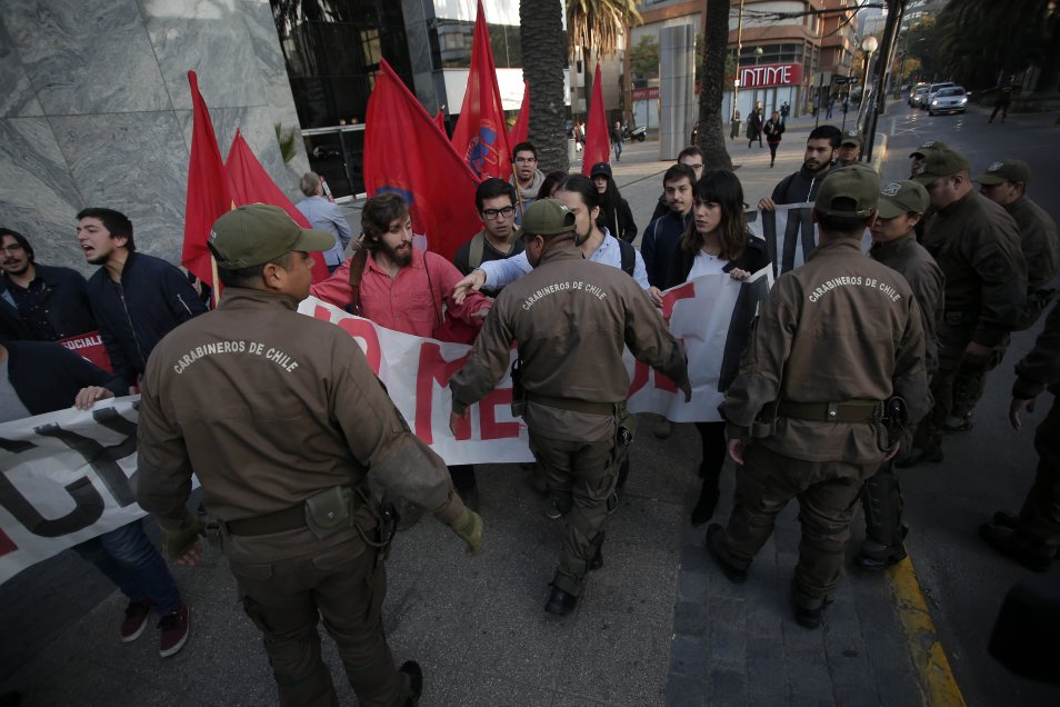 Juventudes Comunistas y Socialistas protestaron contra diputado Urrutia en sede UDI