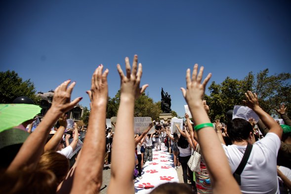 Una masiva marcha se realizó este domingo en el centro de Santiago que exigía justicia para "Cholito", el perro que fue brutalmente agredido en Patronato.