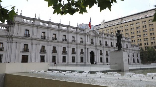 | Manifestantes se encuentran concentrados a esta hora de la tarde frente al Palacio de La Moneda, en la vereda sur de la Alameda Bernardo O'Higgins.