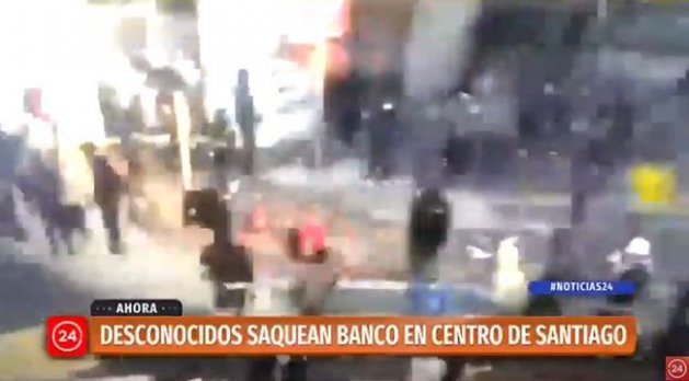 | #CooperativaEnCasa El Canal 24 horas muestra imágenes de una sucursal de Scotiabank ubicada en Moneda con Estado que es saqueada por encapuchados: