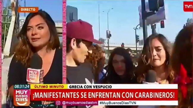 Por parte de TVN, una periodista realizaba un despacho en vivo, pero al hablar sobre encapuchados un joven la interrumpió e interpeló: "¡Mentira, no hubo encapuchados! ¡No mientan!".