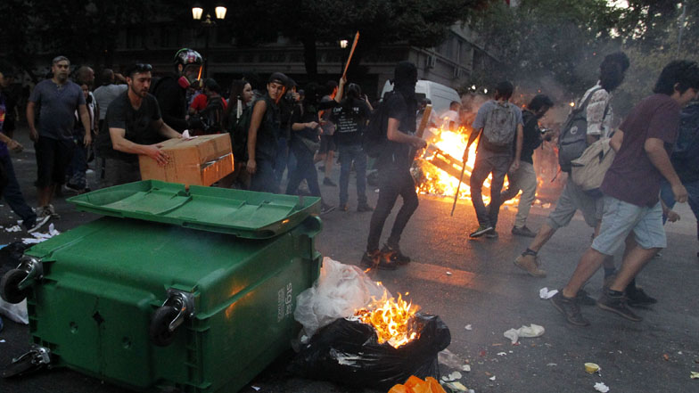 Los desórdenes comenzaron a eso de las 20:00 horas, luego de que manifestantes empezaran a transitar por calle Alonso de Ovalle, con el objetivo de tomar calle Zenteno y dirigirse hacia el Palacio de La Moneda.