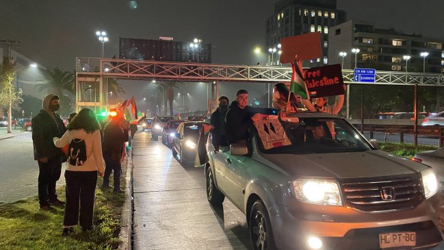 Con pancartas, autos pintados y banderas palestinas flameando, la manifestación inició en el Club Palestino, en avenida Kennedy en Las Condes, y luego avanzó hacia el poniente por avenida Apoquindo, luego Providencia hasta llegar al sector de Plaza Baquedano; y su paso provocó congestión vehicular por las vías que transitó.