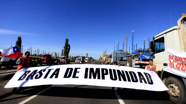 Trabajadores forestales, contratistas y camioneros paralizaron sus funciones desde las 08:00 horas de este martes en tres regiones del país para rechazar los atentados registrados en las provincias de Arauco y Malleco.