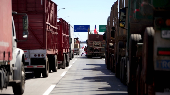 "A raíz de esta contingencia de movilización del trasporte de carga mayor se está generando aglomeración de algunos camiones, pero sin efectuar cortes de ruta", explicó Eric Flores, jefe de la VIII Zona de Carabineros.