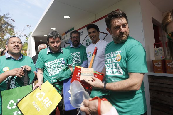 El ministro de Medio Ambiente, Marcelo Mena, y el intendente de la Región Metropolitana, Claudio Orrego, participaron en la "Gran Fiesta del Reciclaje", instancia gratuita que se realiza este lunes en el Parque Quinta Normal y que busca reunir a la ciudadanía en torno a la importancia de reducir, reutilizar y reciclar.