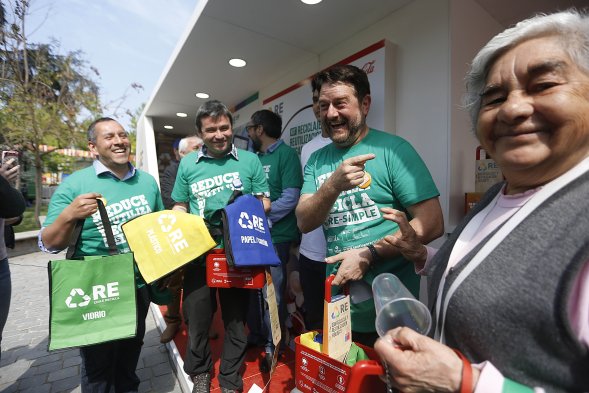El ministro de Medio Ambiente, Marcelo Mena, y el intendente de la Región Metropolitana, Claudio Orrego, participaron en la "Gran Fiesta del Reciclaje", instancia gratuita que se realiza este lunes en el Parque Quinta Normal y que busca reunir a la ciudadanía en torno a la importancia de reducir, reutilizar y reciclar.