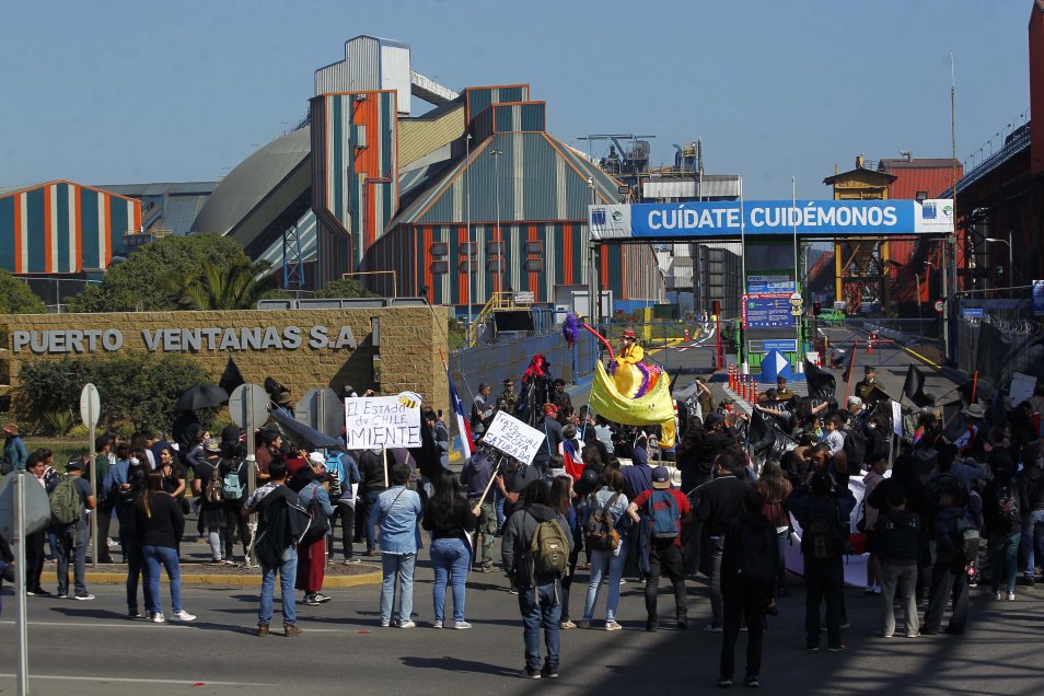 Cientos de vecinos de Quintero y Puchuncaví marcharon este sábado, en medio de la emergencia ambiental que ha provocado la intoxicación de alrededor de 600 personas entre ambas comunas. La protesta se llevó a cabo en la Ruta F-30, autopista que une Concón con Maintencillo, y terminó con cinco detenidos por desórdenes, luego de que algunos manifestantes intentaran cortar la ruta hacia Horcón.