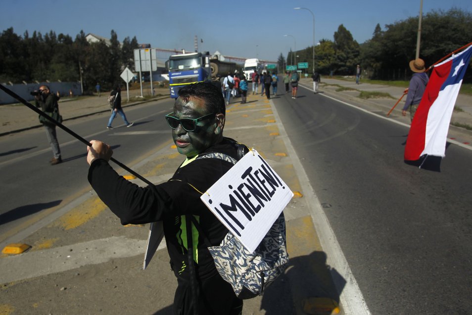 Cientos de vecinos de Quintero y Puchuncaví marcharon este sábado, en medio de la emergencia ambiental que ha provocado la intoxicación de alrededor de 600 personas entre ambas comunas. La protesta se llevó a cabo en la Ruta F-30, autopista que une Concón con Maintencillo, y terminó con cinco detenidos por desórdenes, luego de que algunos manifestantes intentaran cortar la ruta hacia Horcón.