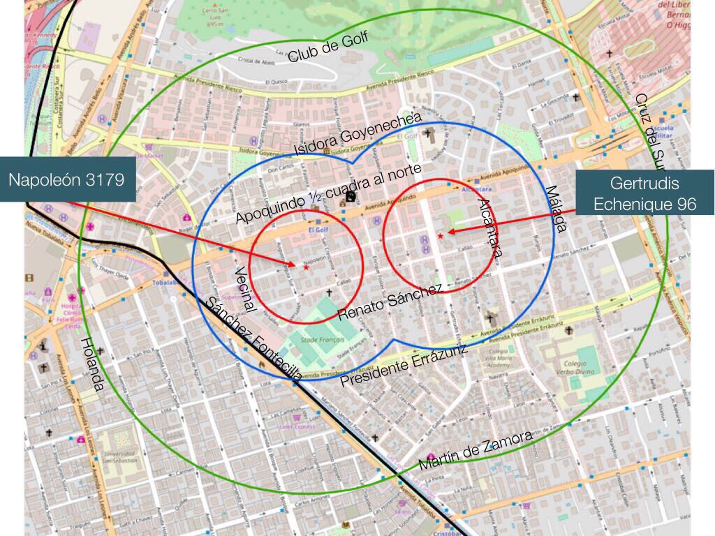 El área que contempla el plan de emergencia es una "relativamente importante de la comuna de Las Condes, porque es toda la zona del barrio El Golf. Los 800 metros abarcan desde Presidente Errázuriz hasta Isidora Goyenechea, y de Sánchez Fontecilla -que es límite con Providencia- hasta Málaga", explicó.