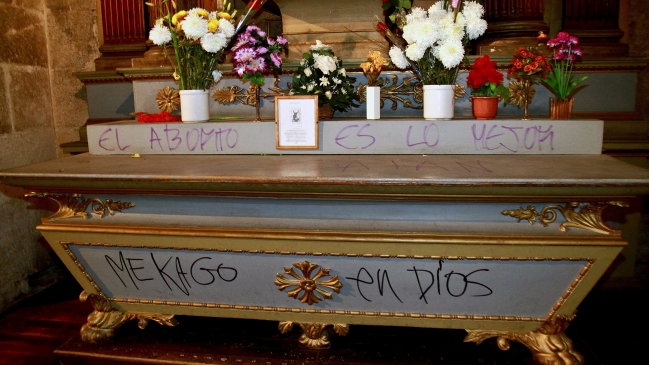 En el lugar las personas gritaron consignas en contra de la postura de la Iglesia frente al aborto y sacaron algunas bancas del templo.