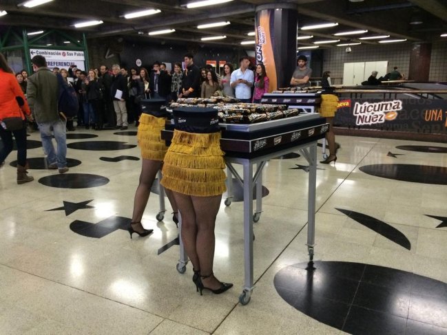 La convocatoria que entregaría premios en galletas por cierta cantidad de tiempo estaba acompañada por la imagen de una pantalla de teléfono celular que captaba la fotografía de las piernas de una mujer en un andén del Metro de Santiago, lo que fue apoyado por un acto de ilusionismo en la estación Baquedano del tren metropolitano en que la mitad inferior de modelos ofrecían el producto: galletas y piernas.