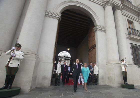 La Presidenta Michelle Bachelet recibió la mañana de este viernes al secretario general de Naciones Unidas, Ban Ki-Moon, y a la directora ejecutiva de ONU Mujeres, Phumzile Mlambo-Ngcuka, quienes visitan Chile con motivo de la cumbre de esta última institución en Santiago.