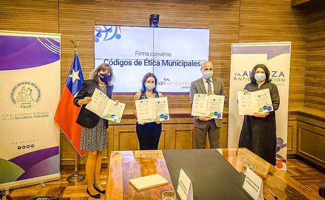 La Contraloría General de la República y la Subsecretaría de Desarrollo Regional (Subdere) firmaron un convenio -junto al Servicio Civil y el Programa de las Naciones Unidas para el Desarrollo (PNUD)- para apoyar la elaboración participativa de códigos de ética en las 345 municipalidades del país, primer paso para la implementación de sistemas de integridad a nivel local.