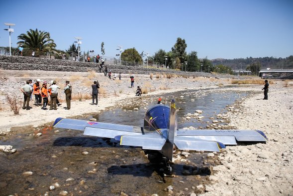 Avioneta realizó aterrizaje forzoso en lecho del río Mapocho