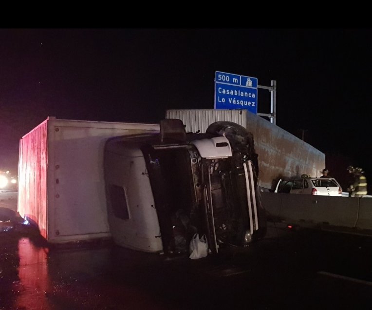 Un accidente de tránsito en el kilómetro 73 de la Ruta 68 (a la altura de Lo Vásquez) obligó la madrugada de este lunes a cortar el tránsito en la carretera por ambos sentidos y generó gran congestión. Los automovilistas fueron desviados por Carabineros por un camino interior.