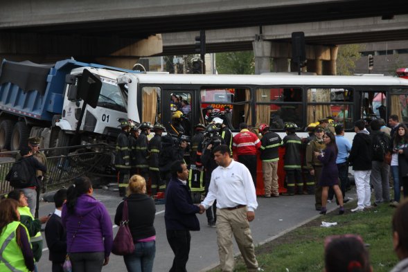 Tópicos: País | Policial | Accidentes de tránsito El fatal accidente en Américo Vespucio Publicado: Viernes, 19 de Octubre de 2012 17 de 24 Un accidente protagonizado por un camión dejó tres personas fallecidas y 23 heridos en Américo Vespucio con El Salto. Un accidente protagonizado por un camión dejó tres personas fallecidas y 23 heridos en Américo Vespucio con El Salto.UPI