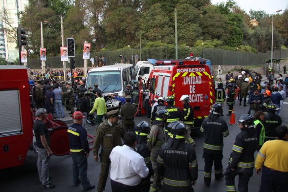 Tópicos: País | Policial | Accidentes de tránsito El fatal accidente en Américo Vespucio Publicado: Viernes, 19 de Octubre de 2012 19 de 24 Un accidente protagonizado por un camión dejó tres personas fallecidas y 23 heridos en Américo Vespucio con El Salto. Un accidente protagonizado por un camión dejó tres personas fallecidas y 23 heridos en Américo Vespucio con El Salto.UPI