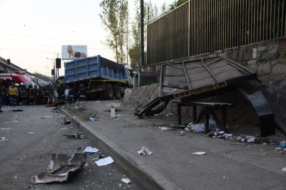 Tópicos: País | Policial | Accidentes de tránsito El fatal accidente en Américo Vespucio Publicado: Viernes, 19 de Octubre de 2012 8 de 24 Un accidente protagonizado por un camión dejó tres personas fallecidas y 23 heridos en Américo Vespucio con El Salto. Un accidente protagonizado por un camión dejó tres personas fallecidas y 23 heridos en Américo Vespucio con El Salto.UPI
