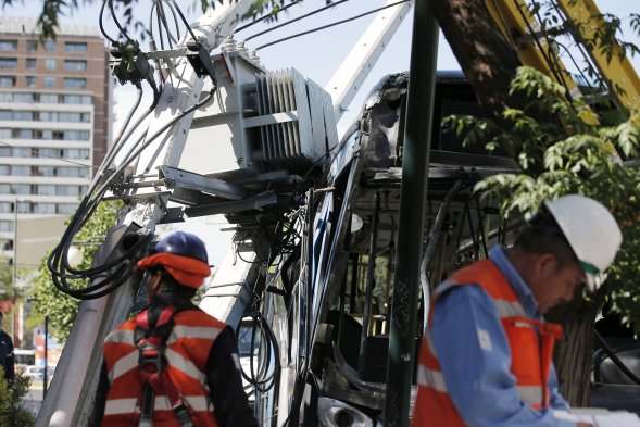 Ñuñoa: Bus del Transantiago chocó con tres postes de luz